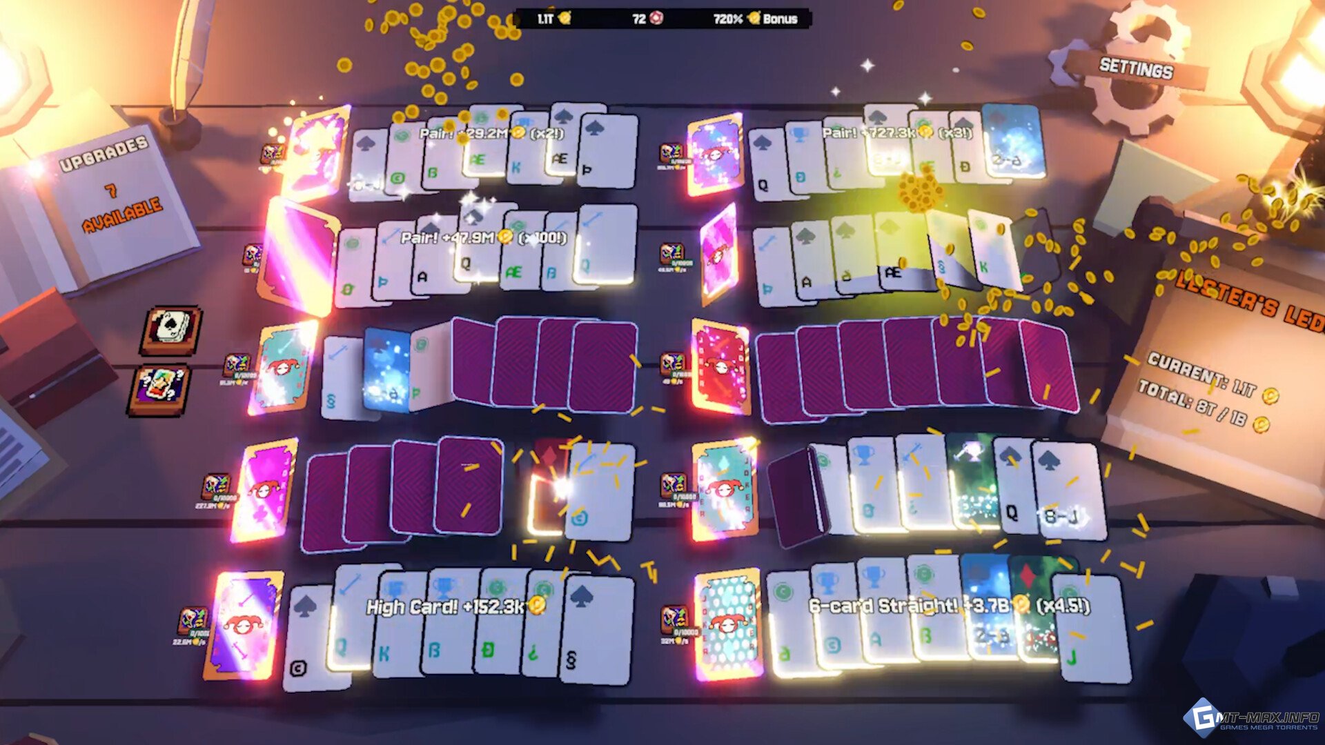 ДОМИНИРУЙ Шуту это, конечно, не нравится, но ты можешь покупать новые колоды, чтобы играть сразу в несколько «рук». Используй это преимущество, чтобы ещё быстрее прокачать свои показатели!