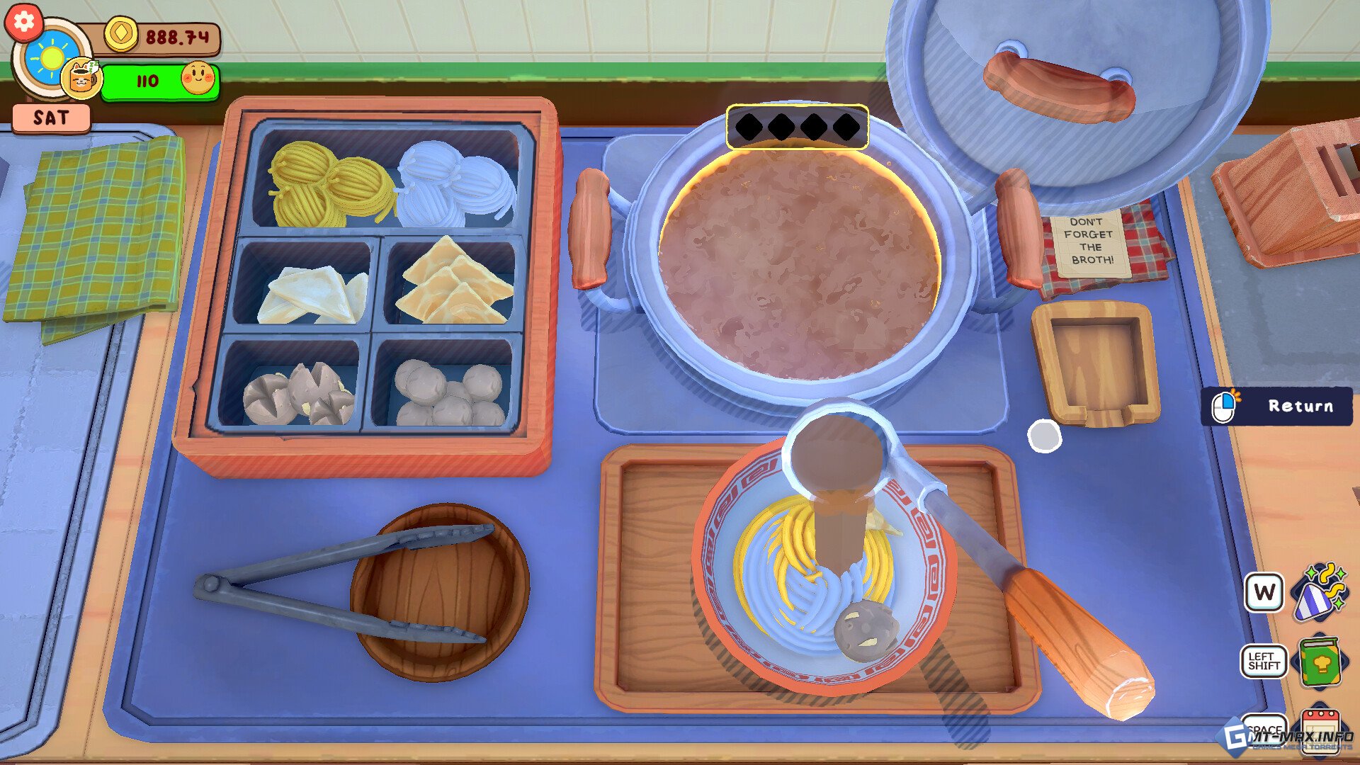 Подготовьте свои рабочие места для уютной кулинарной игры с характером! Готовьте уникальные блюда для эксцентричных жителей маленького городка, улучшайте и настраивайте свой магазин, участвуйте в захватывающих кулинарных битвах, чтобы стать лучшим шеф-поваром, и защищайте семейный ресторан, работающий уже много лет, вместе с целой компанией любопытных друзей!