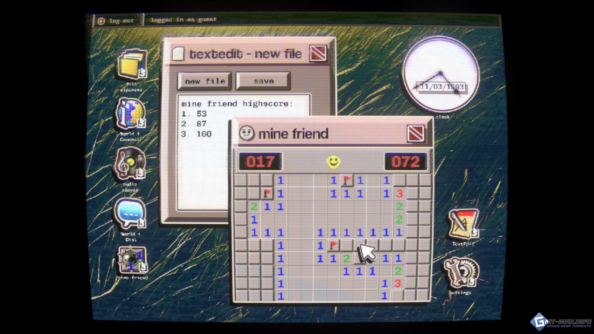 ›› ИССЛЕДУЙТЕ ЗАБРОШЕННЫЙ КОМПЬЮТЕР погрузитесь в детально воссозданную атмосферу рабочего стола псевдо-90-х. скачивайте игры с малоизвестного форума, изучайте файлы, оставленные прежним владельцем, и исследуйте цифровые слои, чтобы раскрыть заговор таинственной игры в «захват флага».